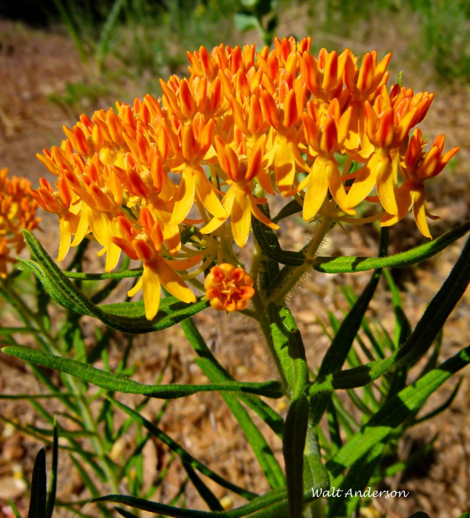 Another gorgeous milkweed is Butterflyweed, certainly one of the most attractive of our native flowering plants. Despite its name, it is more often pollinated by bees and wasps than butterflies. With hairy stems and lower concentrations of alkaloids than most milkweeds, it is not a favorite of the Monarch, though caterpillars of both the Monarch and the Milkweed Tussock Moth can survive on it.