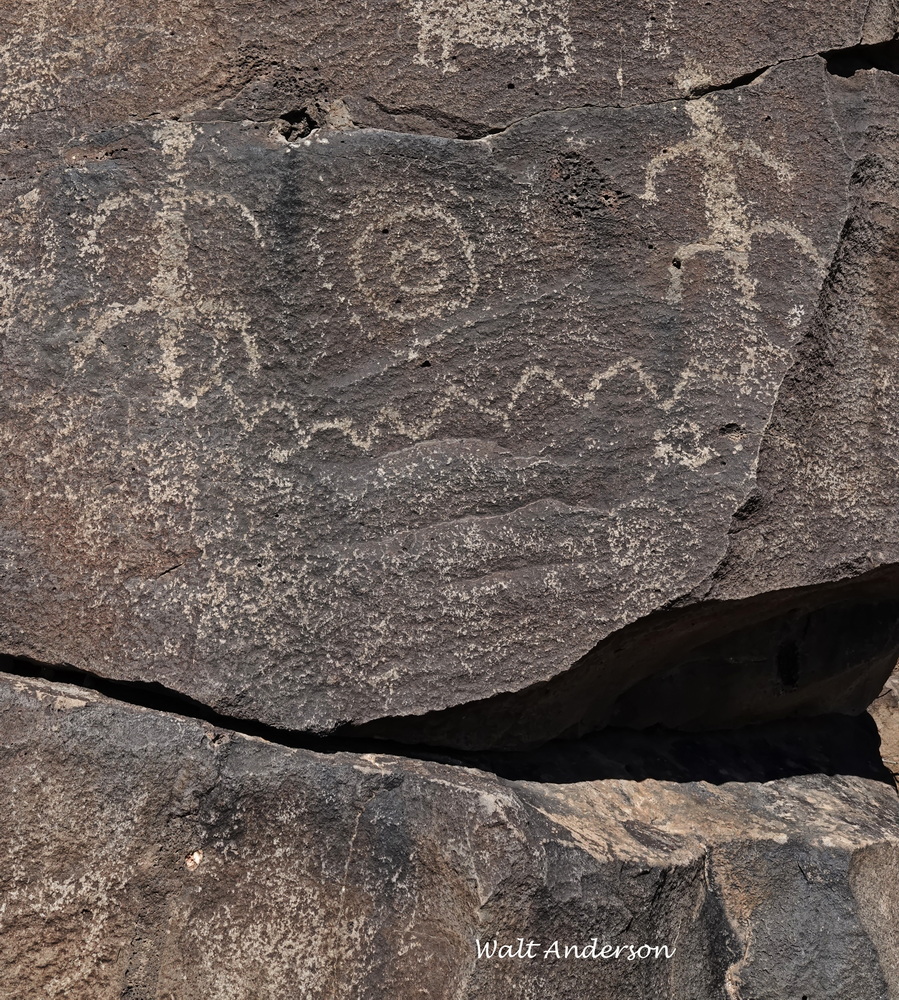 This petroglyph even demonstrates lizard locomotion. They seem to defy gravity as they scurry around in the trees or boulders, sometimes upside down. This image received a coating of pigment too.