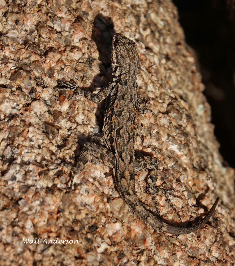 In fact, we might not notice the little lizard at all if it doesn’t move, as those ornate patterns provide outstanding camouflage. Crypsis is an effective anti-predator strategy, though if the lizard senses danger, it may quickly zip around behind the tree trunk or into a crack in the rocks. Freeze first; flee when you have to.