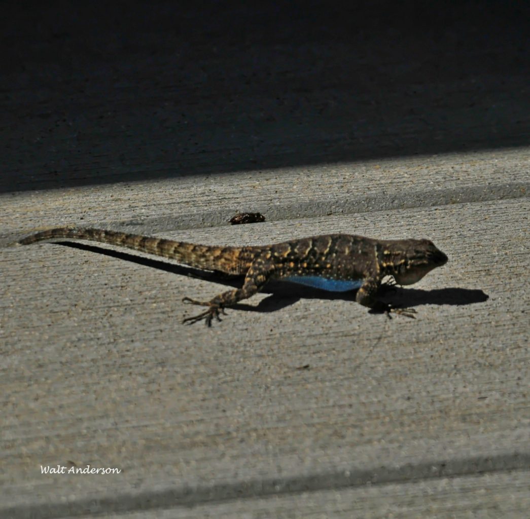 Crypticity is great if you are worried about predators, but when mating season comes each spring, you may need some flashy colors to attract a mate and repel rivals. Like some other lizards, adult males have broad, blue belly patches that are displayed during bouts of vigorous push-ups. These may be accompanied by head-bobs and lateral displays, as competing males size each other up. Full-show displays can escalate into aggressive fighting if neither is intimidated by the other’s appearances. During the aggressive displays, the lizard may turn much darker, just as it can do on cool days to improve solar collection. Interestingly, the Spanish word for “lizard” is “lagartija,” which means “push-ups,” as in calisthenics.