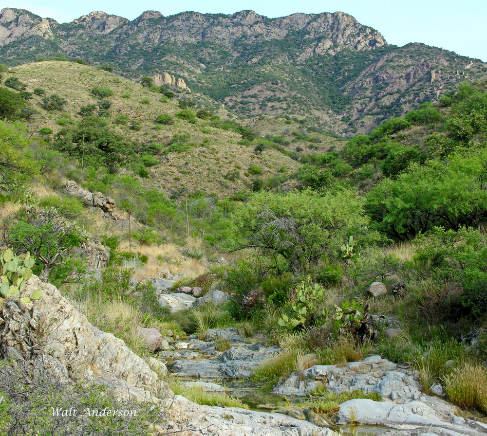 Brown Canyon in the Baboquivaris is perfect habitat for tree lizards, which use rocks as much as they use trees. The Ornate Tree Lizard is found almost anywhere in Arizona where there are suitable substrates for it to live on. Its range also includes much of New Mexico and portions of Texas, Colorado, Nevada, California, and Wyoming, as well as part of northern Mexico. It has adapted well to urban environments too, though it has to have adequate food supply and shelter (which is why it slips into houses!). Cats can be a major limiting factor!